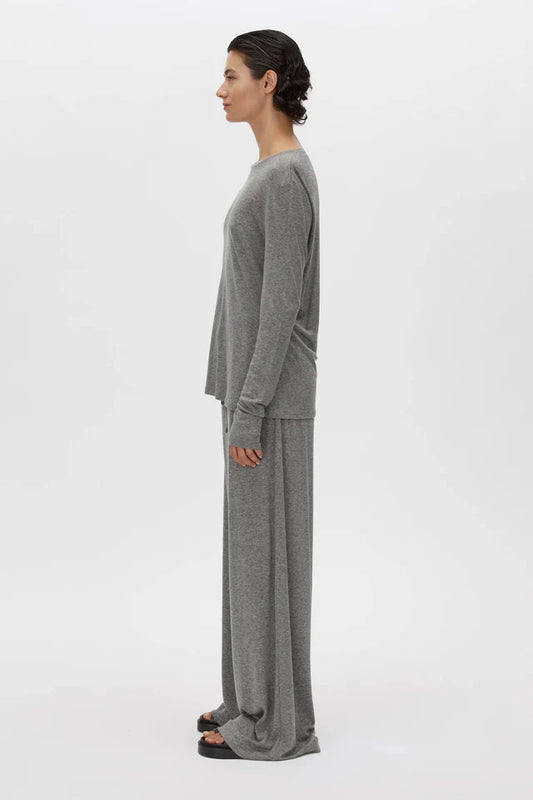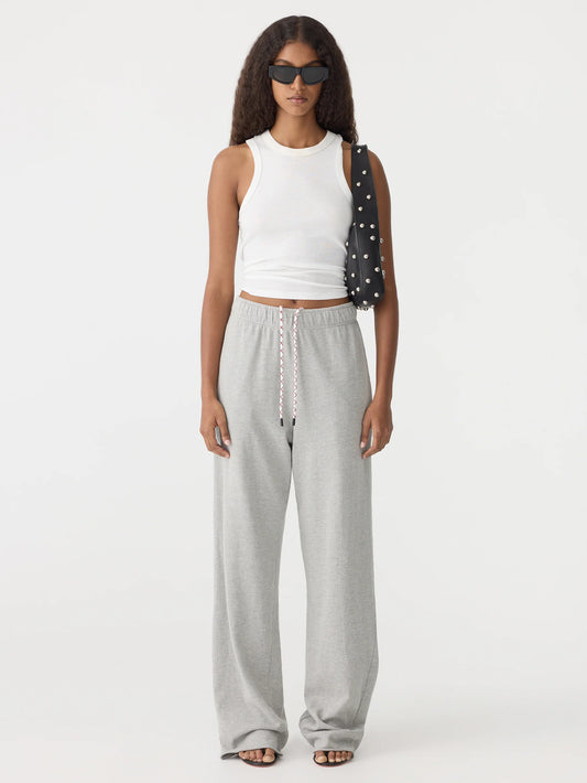 BASSIKE -Wide Leg French Terry Pants - Grey Marl