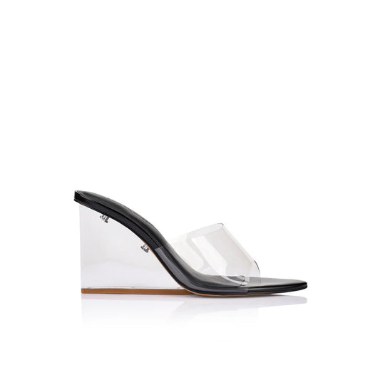 LANA WILKINSON - Sera Wedge Heel Lucite & Black Vinylite