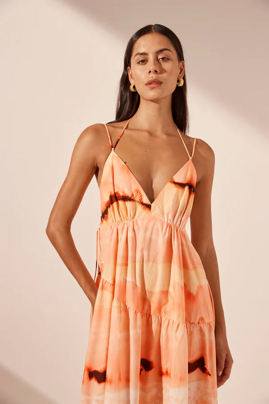 SHONA JOY Larissa tiered maxi dress-peach/multi
