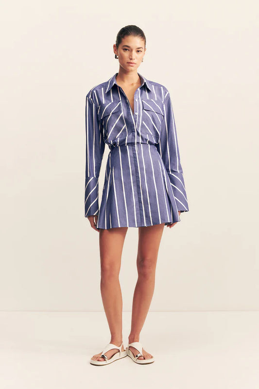 SHONA JOY Cambridge Shirt Mini Dress-chambray blanc