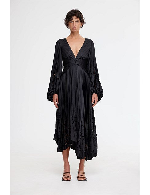 The Barlow Midi Dress in Black was crafted for events this season. An elegant silhouette, featuring full length accentuated sleeves, twisted back detail, plunging neckline and cut out artwork detail at the hem. Pair back with fine gold jewellery for a complete look.