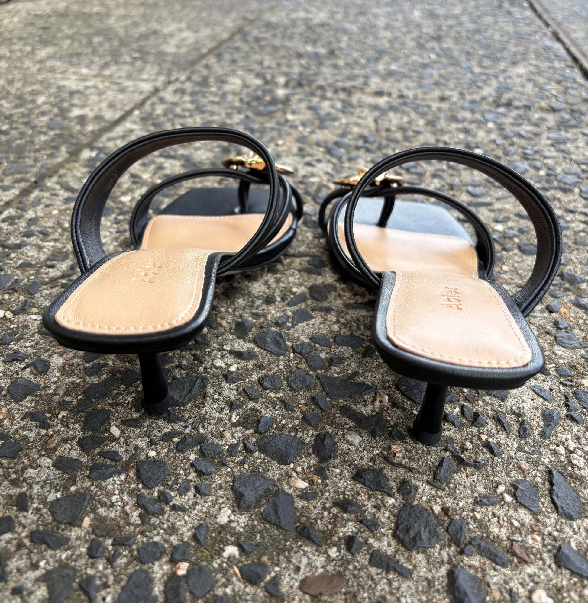 - Low-heeled design merges minimalism with a bold accent