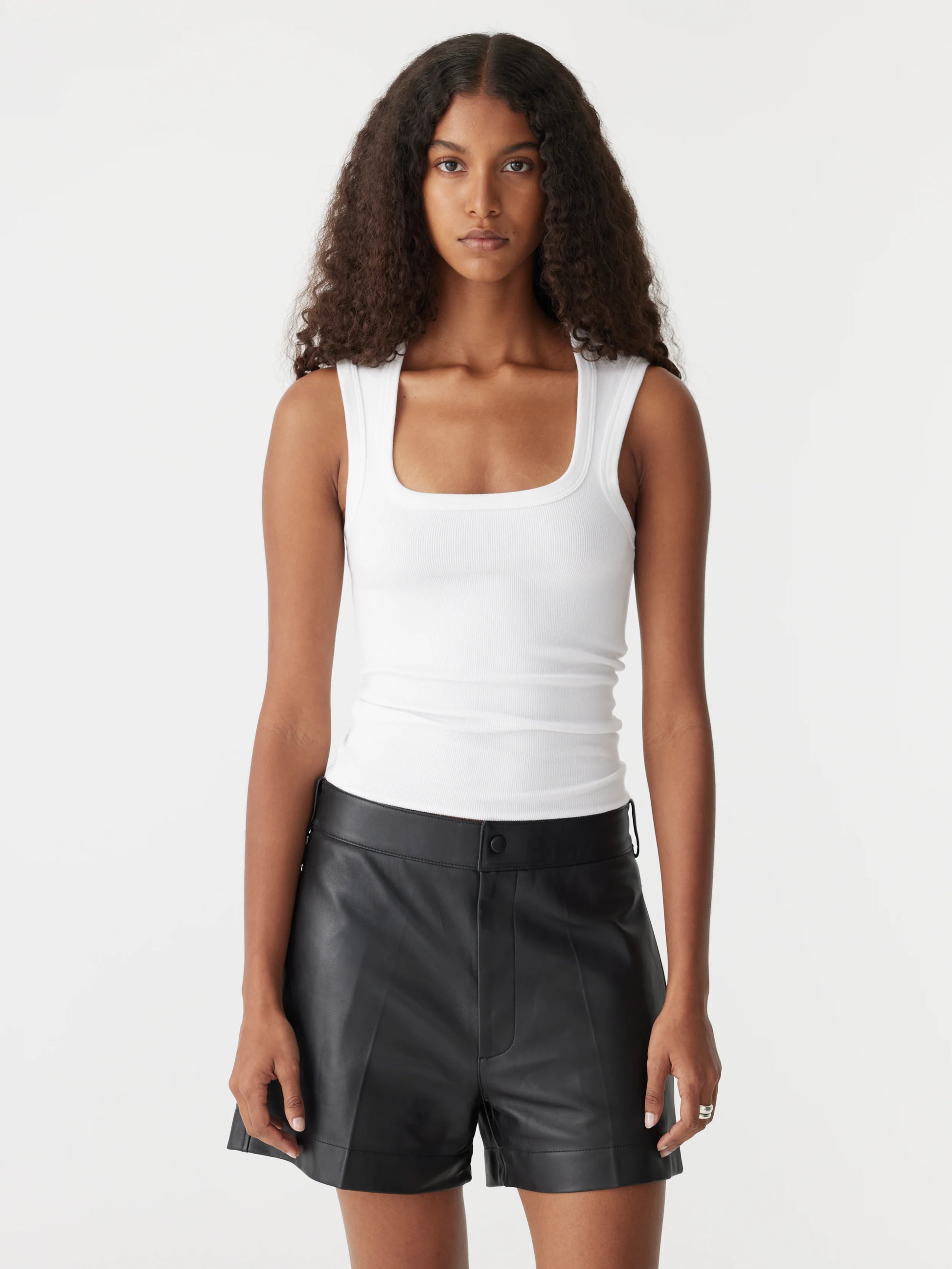 A new classic crafted in a premium organic cotton elastane rib, the Low Scooped Rib Tank is designed as a foundational wardrobe element. The garment boasts a slim-fit design, sleeveless silhouette and square scooped neckline with wide straps. Finished with a raw body hem finished with cover-stitch detail. Framed by armholes and neckline in organic cotton rib bind. Distinguished by signature Bassike contrast topstitching at back.