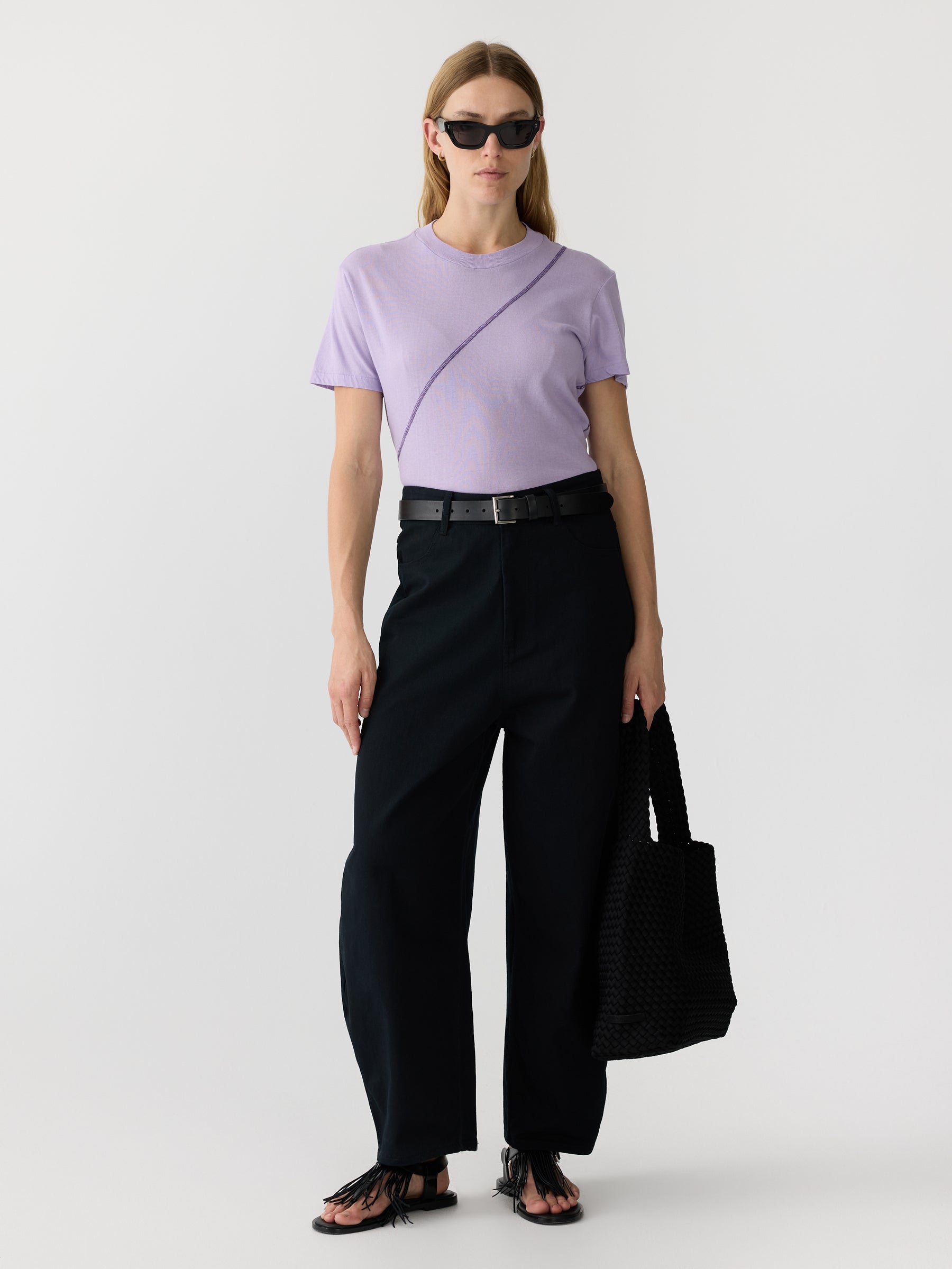 BASSIKE Splice coverstitch short sleeve top-lavender