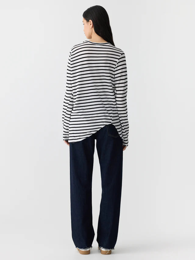BASSIKE Stripe Scoop Hem Long Sleeve t-shirt-black/white