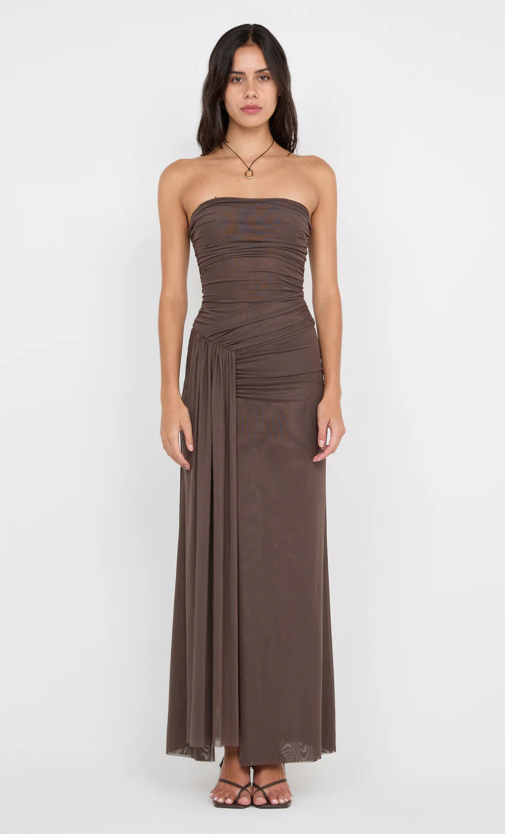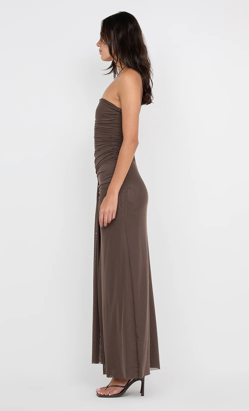 da Strapless Dress in Milk Chocolate. This elegant strapless maxi dress is an ideal choice for formal season, a wedding guest dress, or any special event.