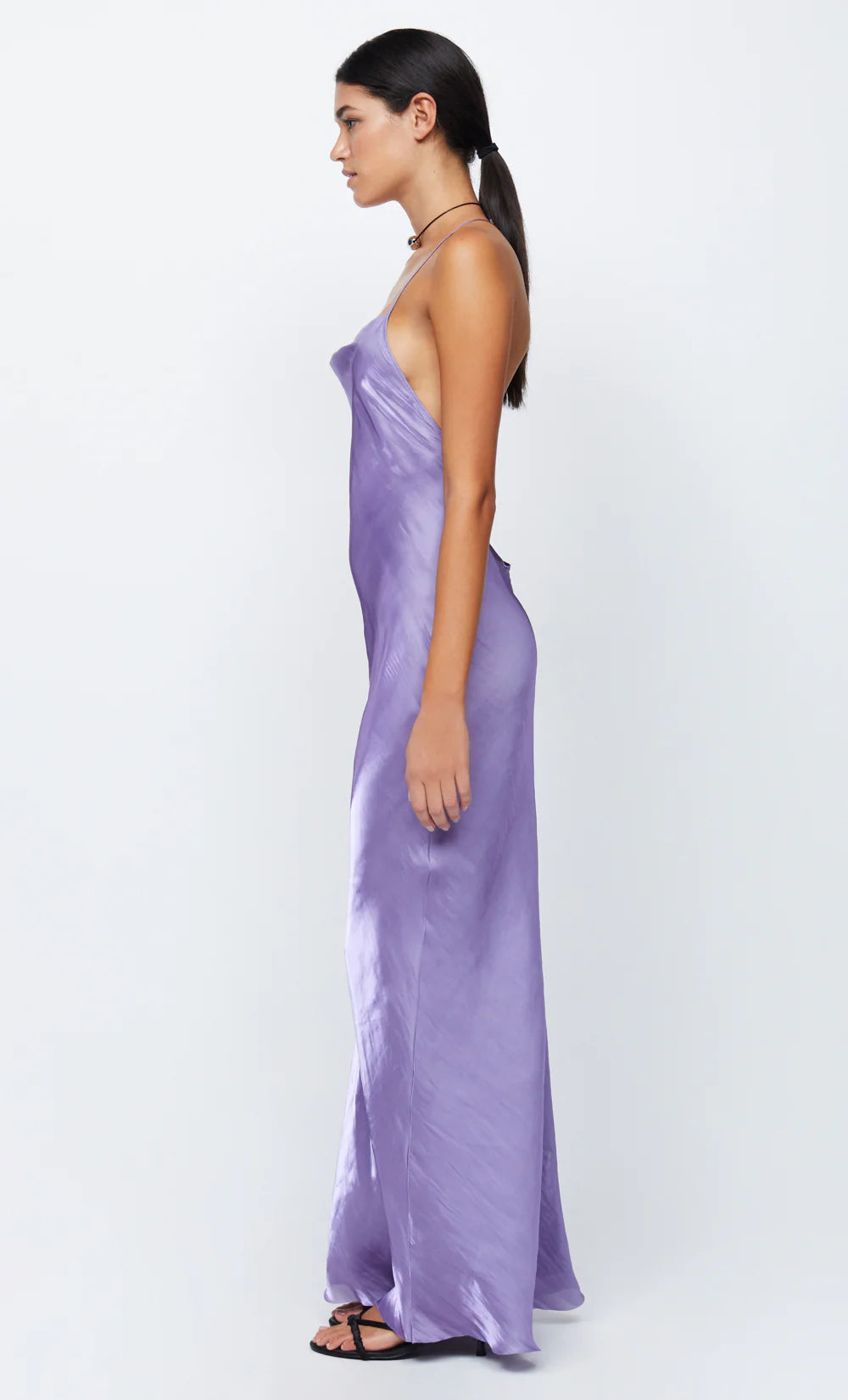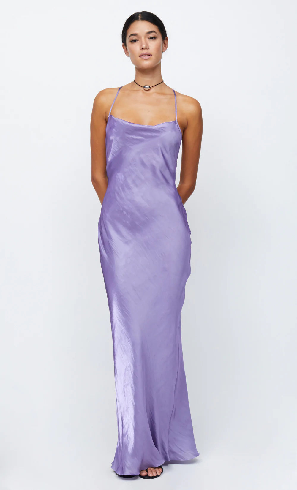 Inspired by a bestselling silhouette, the Indra Maxi Dress is a beautiful eventwear style featuring a feminine cowl neckline and low-cut back with twist detail. Cut on the bias from a lustrous fabric, the maxi is finished with thin rouleau straps and a double rolled hem. This garment is certified Australian made.