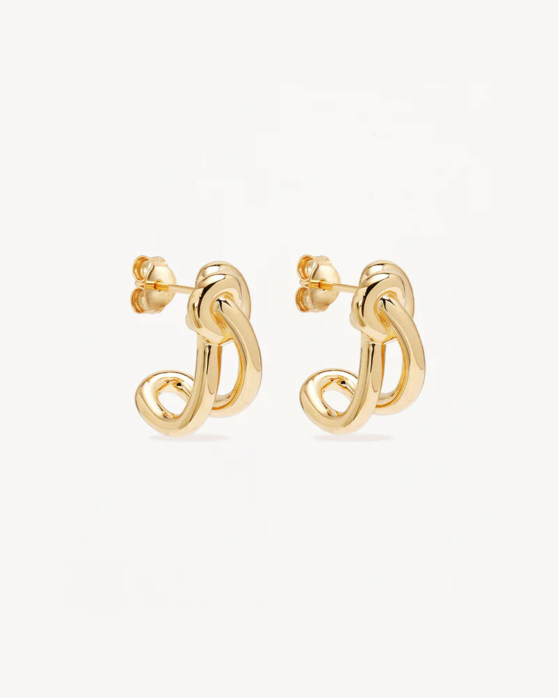Our 18k Gold Plated Always With You Earrings feature a timeless knot motif, serving as a reminder of the deep connections and cherished relationships that anchor you. These hoops hug the lobe, making them perfect as both an everyday style, and for occasion dressing.