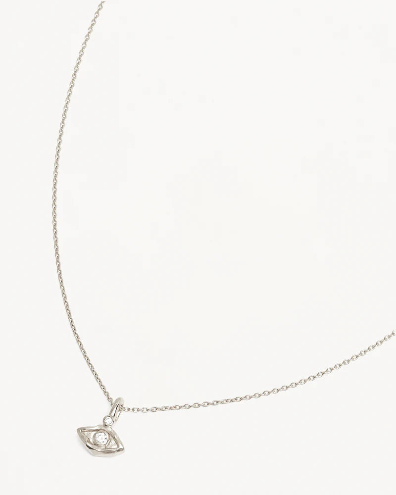Allow the watchful gaze of the evil eye to protect you in our delicate Sterling Silver I Am Protected Necklace. Set with cubic zirconias in bezel settings, let this elegant keepsake inspire resilience against the negative forces that may threaten to compromise your confidence.