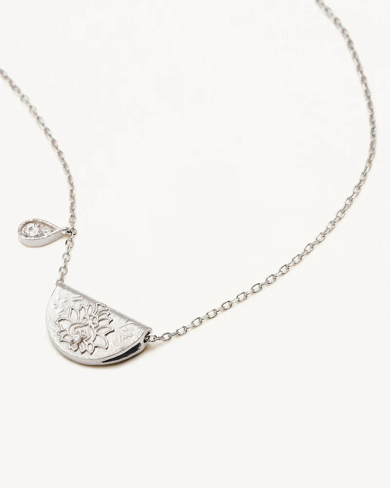 BY CHARLOTTE - Lotus Birthstone Necklace -April in Sterling Silver
