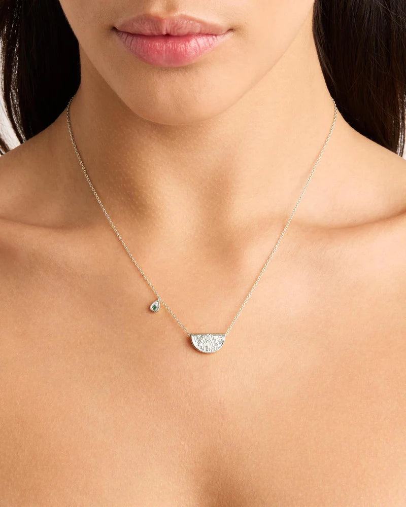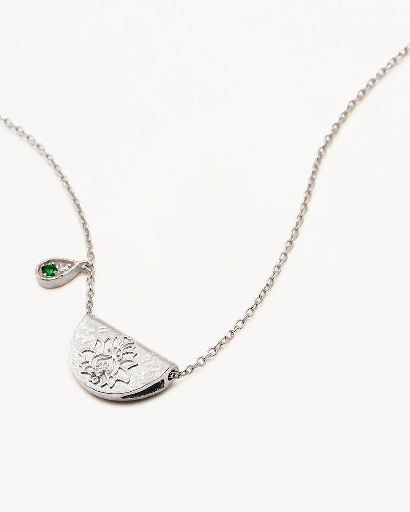 BY CHARLOTTE - Sterling Silver Lotus Birthstone Necklace - May - Emerald