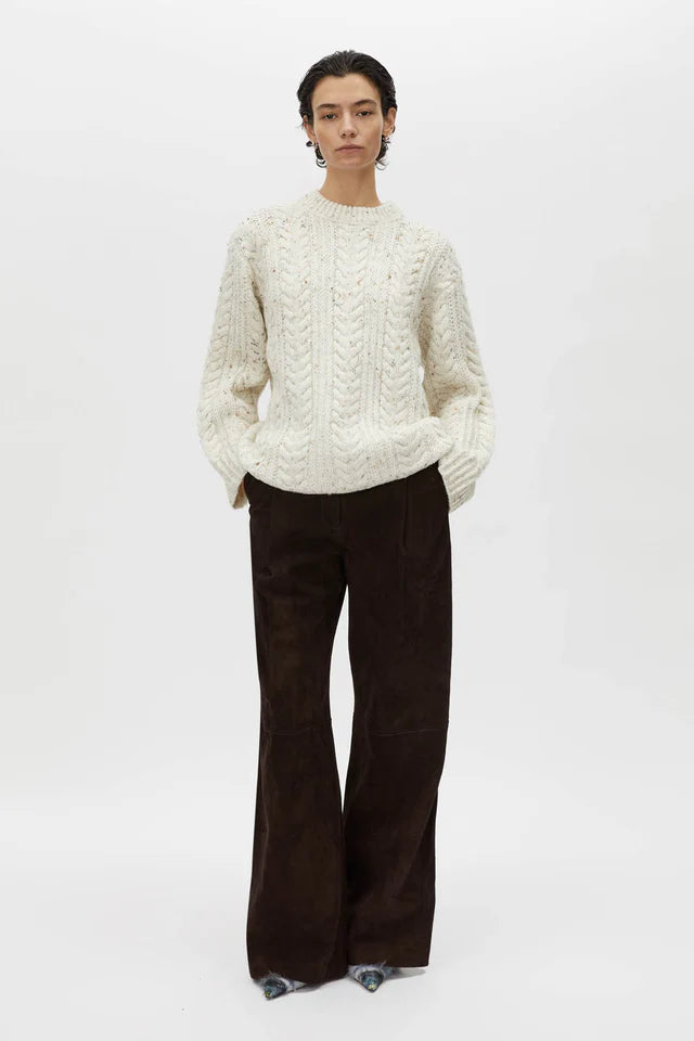 CAMILLA AND MARC Terrazzo Cable Knit Sweater in Cream Fleck.