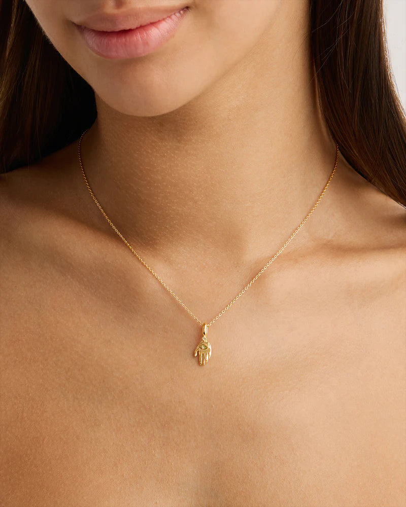 Embrace the abundance of the universe with our delicate 18k Gold Vermeil Guided Soul Necklace. Adorned with a natural peridot and the protective Hamsa Hand, this necklace is crafted to shield you from negativity and guide your soul toward goodness.