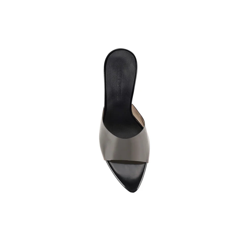 Inspired by the iconic Lana Wilkinson wedge, Sera returns with a bold new twist for the season. Crafted from striking black-tinted vinylite and perched on a sculptural lucite wedge heel, this statement sandal boasts a sleek single-strap design, a refined open pointed toe, and an architectural silhouette that exudes modern elegance.