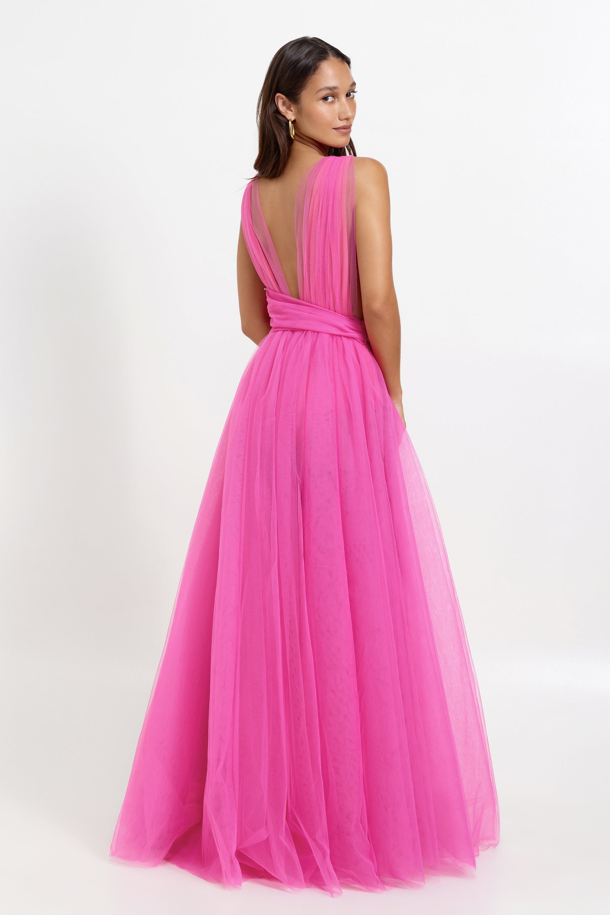 - Floor length tulle gown