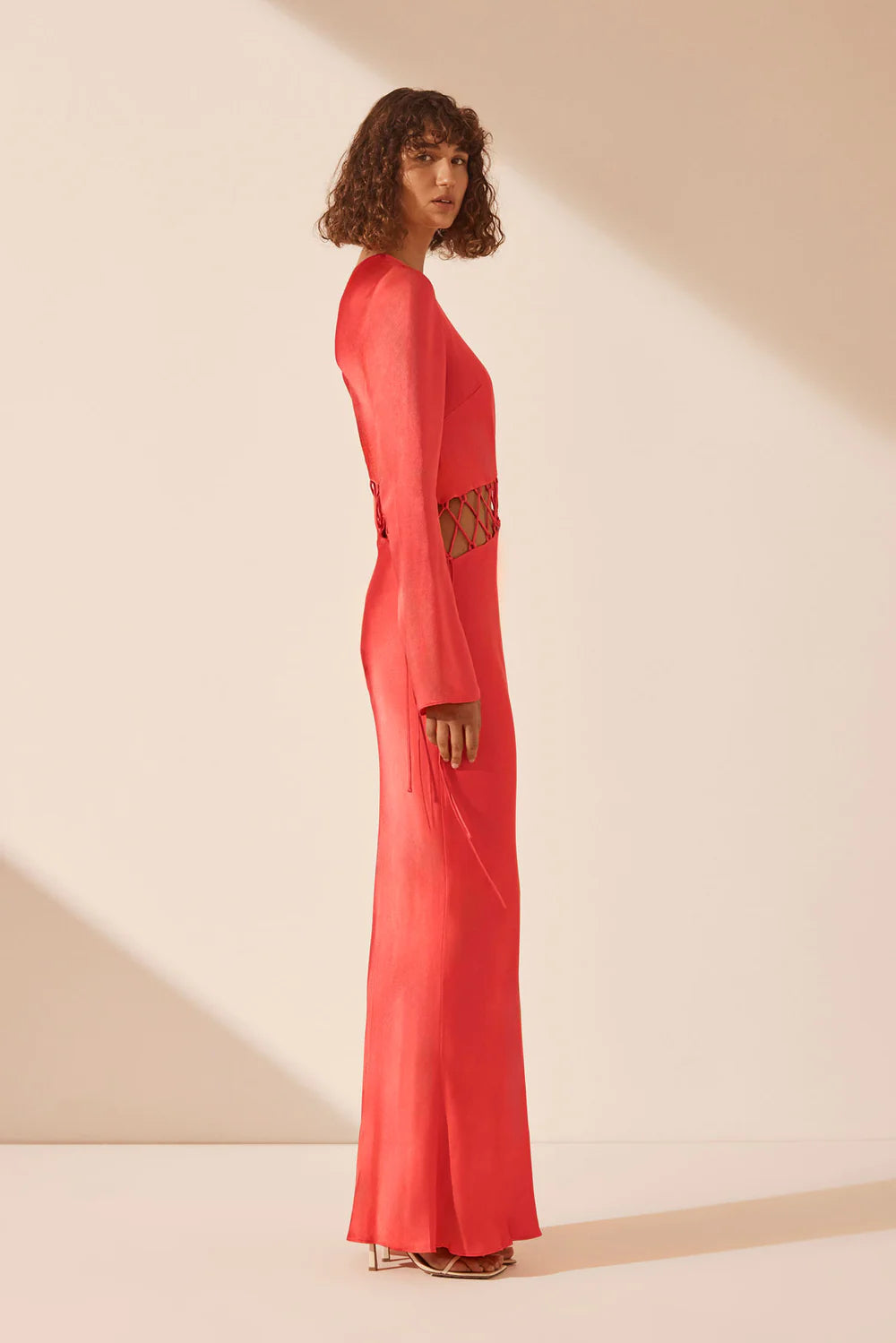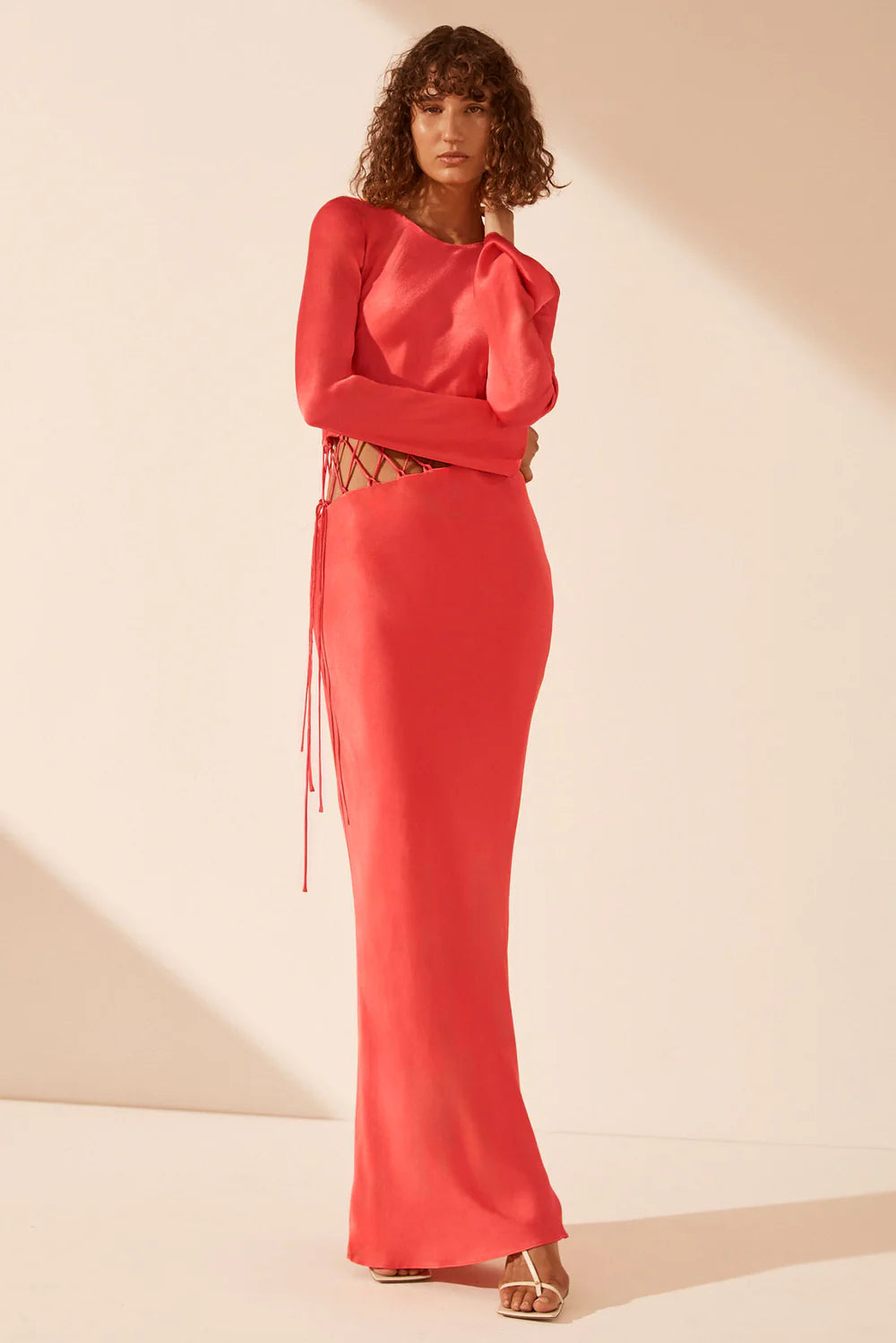 SHONA JOY Poppy Red Asymmetrical Maxi Dress