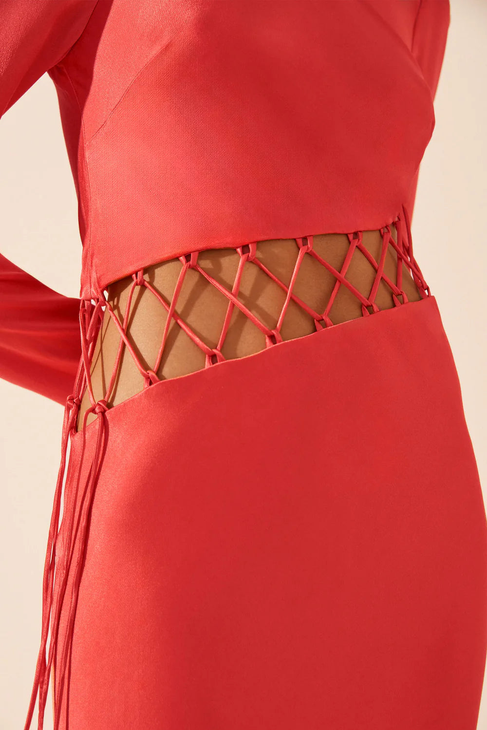 - Asymmetrical lace up detail at waist